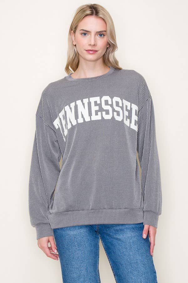 "TENNESSEE" RIBBED GRAPHIC L/S SWEATSHIRT 2 / 2 / 2 / 1 (S / M / L / XL) Model is Wearing a Small